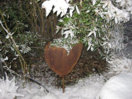 aus Blech, ca. 50 cm breit, mit Metallstab wahlweise mit oder ohne Patina